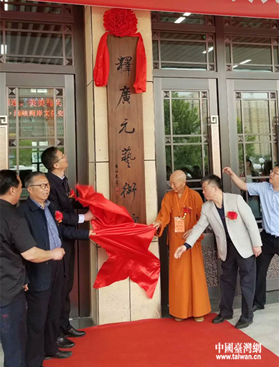 河南省文聯(lián)黨組書(shū)記王守國(guó)、周口市委常委、統(tǒng)戰(zhàn)部長(zhǎng)趙錫昌、市政協(xié)黨組副書(shū)記穆仁先和釋廣元長(zhǎng)老共同為釋廣元藝術(shù)館揭牌。(中國(guó)臺(tái)灣網(wǎng)、周口市臺(tái)辦聯(lián)合報(bào)道)
