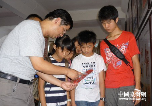 中國臺灣網(wǎng)7月29日孝感消息 日前,來自臺灣的五名小朋友到湖北孝感市雕花剪紙研究所參觀雕花剪紙工藝。臺灣小朋友們興致勃勃的參觀了剪紙工藝品展覽,對中華民間藝術(shù)的博大精深無比贊嘆。