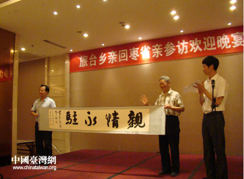 棗陽市委常委、常務(wù)副市長杜云峰介紹了棗陽悠久的歷史文化和近年來棗陽經(jīng)濟(jì)社會發(fā)展情況,市委書記陳東靈向臺胞贈送了“親情永駐”書法作品,臺胞杜泰生先生代表省親參訪團(tuán)致答謝辭,他表示,三年來兩次回鄉(xiāng),切身感受到了棗陽的快速發(fā)展與巨大變化。雖然我們?nèi)嗽谂_灣,但根在棗陽,心系棗陽,一定會;丶铱纯。席間,兩地同胞打開心扉,共敘友情,交流感情,傳遞親情。