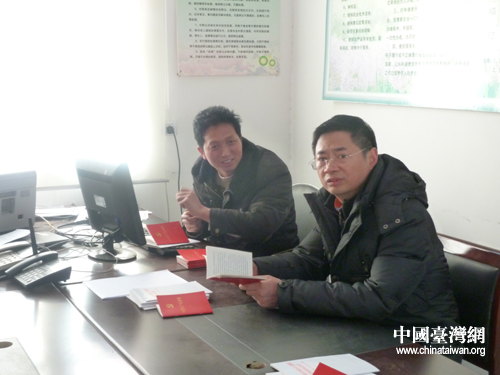 中國(guó)臺(tái)灣網(wǎng)1月10日襄陽(yáng)消息 日前,湖北省襄陽(yáng)市臺(tái)辦購(gòu)買(mǎi)《十八大報(bào)告》和《黨章》各40本,贈(zèng)送給谷城縣天子溝、石門(mén)、將軍山、土橋溝四個(gè)駐點(diǎn)聯(lián)系村,襄陽(yáng)市臺(tái)辦副主任趙文忠每到一處分別與村干部學(xué)習(xí)黨的十八大報(bào)告中關(guān)于新農(nóng)村建設(shè)和加快農(nóng)民增收步伐的內(nèi)容,并與村干部共同學(xué)習(xí)新黨章。(中國(guó)臺(tái)灣網(wǎng)襄陽(yáng)市臺(tái)辦通訊員 崔有理)