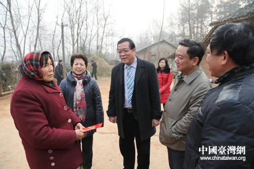 中國臺灣網(wǎng)1月16日襄陽消息 1月16日,湖北襄陽市臺資企業(yè)協(xié)會會長王碧緣女士帶領(lǐng)臺資企業(yè)協(xié)會副秘書長林瑋民等一行5人,在襄陽市臺辦主任尚明洋、副主任趙文忠,谷城縣委常委、統(tǒng)戰(zhàn)部長曾海等的陪同下,來到谷城縣石花鎮(zhèn)將軍山村、土橋溝村、天子溝村、石門村開展送溫暖獻(xiàn)愛心活動。