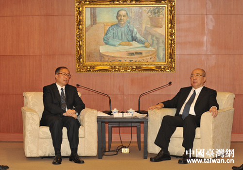 湖北省委書記李鴻忠在中國國民黨黨部會(huì)見國民黨榮譽(yù)主席吳伯雄先生。(圖片來源:湖北省臺(tái)辦)