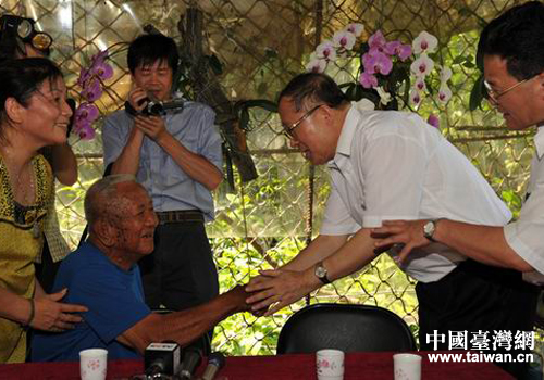 5月30日,李鴻忠一行看望彰化市屈家村長(zhǎng)老屈國先生。(圖片來源:湖北省臺(tái)辦)