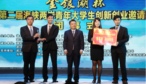 “金銀湖杯”第二屆海峽兩岸青年大學(xué)生創(chuàng)新創(chuàng)業(yè)邀請賽于11月16日上午在武漢輕工大學(xué)圓滿落幕。省政府黨組成員童道馳出席活動并為獲得特等獎團(tuán)隊頒獎,省政府副秘書長聶昌斌、團(tuán)省委書記、省青聯(lián)主席張桂華,團(tuán)中央統(tǒng)戰(zhàn)部副部長、全國青聯(lián)副秘書長黃志剛,武漢輕工大學(xué)黨委書記肖波,武漢輕工大學(xué)黨委副書記、校長劉民鋼,團(tuán)省委副書記、省青聯(lián)副主席張澍,武漢市臺辦主任陳明權(quán)、團(tuán)武漢市委書記、市青聯(lián)主席葉文靜,武漢臨空港經(jīng)開區(qū)管委會常務(wù)副主任、東西湖區(qū)區(qū)長楊澤發(fā),武漢輕工大學(xué)黨委副書記劉豐林,國民黨青年部主任、臺灣中華青年企業(yè)家協(xié)會理事長張淵翔,臺灣中華青年企業(yè)家協(xié)會榮譽(yù)理事長陳建騏,國民黨中央委員、鄂臺青年交流合作協(xié)會會長陳維德,國民黨中央委員、臺灣青年聯(lián)合會理事長何溢誠,臺灣青創(chuàng)總會副主委黃維鈞,臺灣青商總會常務(wù)副會長呂忠穎等出席閉幕式。臺灣青創(chuàng)總會、臺灣青商總會、省臺辦、省青聯(lián)及武漢臨空港區(qū)、武漢輕工大學(xué)等相關(guān)部門和鄂臺兩地青年大學(xué)生500余人參加閉幕式。中央、省級及武漢市級20多家媒體聚焦此次活動。