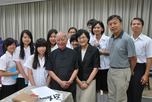 第二環(huán)節(jié)轉(zhuǎn)到金甌女中,筆者會(huì)同臺(tái)灣文壇“常青藤”、著名作家司馬中原,臺(tái)灣“中央大學(xué)”前校長(zhǎng)余傳韜教授,以及童中儀校長(zhǎng),同來(lái)自湖北、河北與臺(tái)北兩岸三地的大中學(xué)生頻繁互動(dòng),十分熱絡(luò)。這也是筆者首次進(jìn)入臺(tái)灣校園交流。