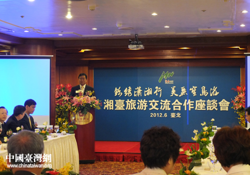 何報(bào)翔在致辭中說,臺灣是著名的旅游勝地,“山高、林密、瀑多、岸奇”的鮮明特色吸引著無數(shù)游人。他說,湖南是一個(gè)旅游資源大省,山水秀美、風(fēng)光奇特,歷史文化底蘊(yùn)深厚,民俗風(fēng)情多姿多彩。發(fā)展湘臺兩地觀光旅游與合作交往,不僅是兩地人民的共同愿望,也符合兩地發(fā)展的長遠(yuǎn)利益。兩地旅游資源有著充分的互補(bǔ)關(guān)系、旅游產(chǎn)業(yè)有著扎實(shí)的交流基礎(chǔ)、旅游業(yè)界有著強(qiáng)烈的合作愿望。