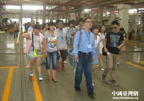 臺(tái)灣常德兩地青年學(xué)生參觀常德三一重工現(xiàn)代企業(yè)。(圖片來(lái)源:常德市臺(tái)辦)