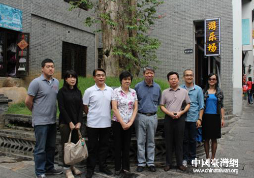 張孝威一行在岳陽風景區(qū)千年古樹下合影留念。(圖片來源:岳陽市臺辦)
