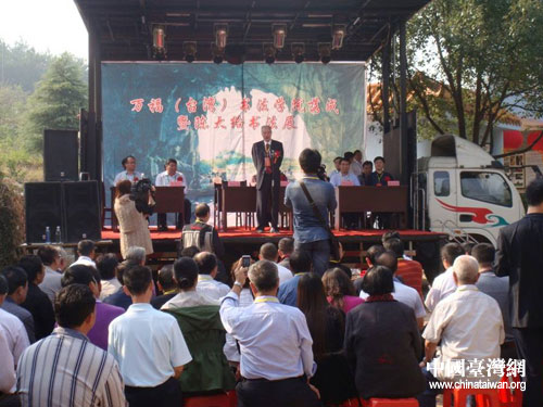 中國臺灣網(wǎng)11月2日湖南寧遠消息 日前,“萬福(臺灣)書法學(xué)院落成典禮暨陳大絡(luò)教授書法展”在風(fēng)光如畫的九嶷山下,寧遠縣桃花巖生態(tài)度假園隆重舉行。萬福(臺灣)書法學(xué)院院長陳大絡(luò)、市縣領(lǐng)導(dǎo)及各級友人共500余人參加典禮。