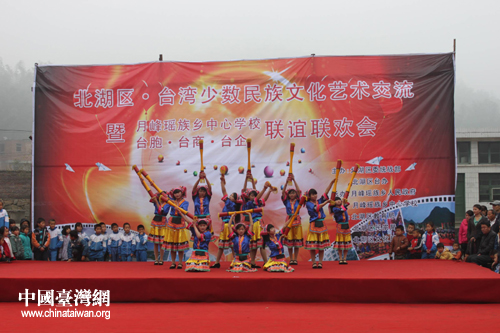 中國(guó)臺(tái)灣網(wǎng)12月5日郴州消息 日前,由湖南郴州市北湖區(qū)委統(tǒng)戰(zhàn)部、北湖區(qū)臺(tái)辦主辦的北湖區(qū)、臺(tái)灣少數(shù)民族文化藝術(shù)交流聯(lián)誼聯(lián)歡活動(dòng)在郴州開(kāi)展。郴州的30多名臺(tái)企臺(tái)商代表在北湖區(qū)月峰瑤族鄉(xiāng)中心學(xué)校參加了此次聯(lián)誼聯(lián)歡會(huì),幾逋饸g快的《瑤族長(zhǎng)鼓舞》、《瑤族婚嫁舞》歡迎臺(tái)灣同胞;臺(tái)商用閩南語(yǔ)演唱《愛(ài)拼才會(huì)贏》表達(dá)了在郴創(chuàng)業(yè)的愉悅心情。臺(tái)商代表還向該校學(xué)生公寓樓建設(shè)項(xiàng)目捐贈(zèng)了6萬(wàn)元愛(ài)心款。(中國(guó)臺(tái)灣網(wǎng)、郴州市北湖區(qū)臺(tái)辦聯(lián)合報(bào)道)