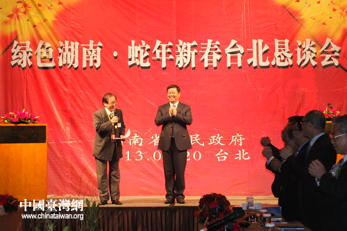 綠色湖南·蛇年新春臺(tái)北懇談會(huì)在臺(tái)北舉行,湖南副省長(zhǎng)何報(bào)翔出席。(湖南省臺(tái)辦 王敏杰 攝)