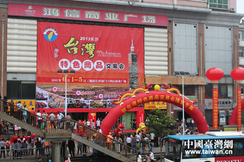 中國(guó)臺(tái)灣網(wǎng)6月4日長(zhǎng)沙消息 6月1日,由中國(guó)特產(chǎn)行業(yè)發(fā)展委員會(huì)、中華兩岸旅游經(jīng)貿(mào)發(fā)展協(xié)會(huì)、湖南鴻信置業(yè)有限公司(港資企業(yè))等單位共同舉辦, 廈門(mén)臺(tái)博商務(wù)有限公司承辦的臺(tái)灣特色商品交易會(huì)在長(zhǎng)沙市天心區(qū)南門(mén)口鴻信商業(yè)廣場(chǎng)隆重開(kāi)幕。