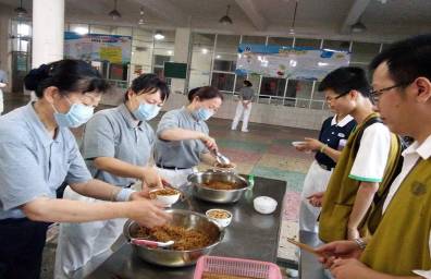 學(xué)校食堂角落里的兩道特殊的身影,姐姐正在為妹妹夾菜。作為志愿者隊(duì)伍里最小的成員,姐姐在讀中學(xué),妹妹才8歲,還在上小學(xué),放棄了假期的安逸,不懼賑災(zāi)途中的勞累與奔波,感恩社會(huì),延續(xù)愛的基因。