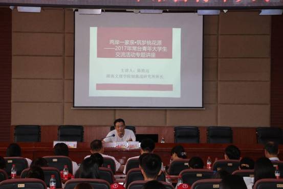 歡迎儀式結束后,兩岸師生相聚一堂,共同聆聽了以常德歷史文化發(fā)展為主題的湖湘文化講座。(中國臺灣網(wǎng)常德市臺辦通訊員 馮琪智)