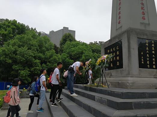師生們向紀(jì)念塔進(jìn)獻(xiàn)鮮花