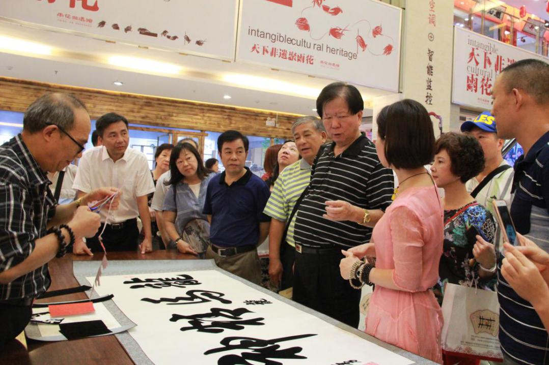 代表團一進非遺館,馬上為“茶道”和“香道”所吸引,紛紛上前“聞香品茗”;當(dāng)來到湘西文化一條街,參觀團中的大多數(shù)女性企業(yè)家都被精美的藍印花布制品所吸引,尤其聽說藍印花布的染料是由板藍根、黃豆等天然作物制成的,更增加了對這圖騰好看、成品精美的布料的興趣;“中華第一剪”洪源老師現(xiàn)場展示背手剪字讓代表團直呼“不可思議”;而在玉疊妃菊花石館,大家觀賞著數(shù)億年前形成的天然菊花石,歷史文化和現(xiàn)代科技碰撞出的奇妙火花讓臺灣參觀團嘆為觀止;寶慶瓷刻、湖南湘繡研究所、芒果大叔木工坊等各場館,無不留下代表團深深地贊嘆,大家紛紛感嘆湖湘大地深厚的歷史文化底蘊,同時也被匠人精神所感染折服。