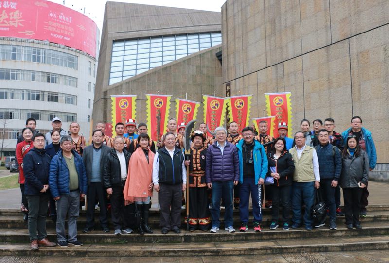中國臺北奧委會參訪團成員在張家界博物館與表演者合影