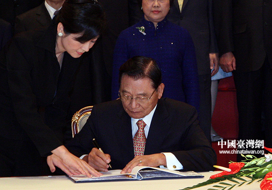 海協(xié)會(huì)會(huì)長陳云林簽署協(xié)議。26日下午三時(shí)許,海協(xié)會(huì)會(huì)長陳云林與臺(tái)灣海基會(huì)董事長江丙坤在南京紫金山莊正式簽署《海峽兩岸空運(yùn)補(bǔ)充協(xié)議》、《海峽兩岸金融合作協(xié)議》、《海峽兩岸共同打擊犯罪及司法互助協(xié)議》。(中國臺(tái)灣網(wǎng) 鐘寶華 攝)