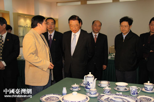 帶著對在景臺商的關切之情,江丙坤一行深入考察臺商投資企業(yè)——景德鎮(zhèn)市法藍瓷公司。江丙坤仔細詢問了解了臺商在景生活工作情況,深入生產(chǎn)車間一線調(diào)研,參觀了產(chǎn)品陳列室,對景德鎮(zhèn)市委市政府安商扶商優(yōu)商的做法給予充分肯定,勉勵臺商在景好好投資創(chuàng)業(yè),為兩岸經(jīng)濟交往與發(fā)展做出貢獻。