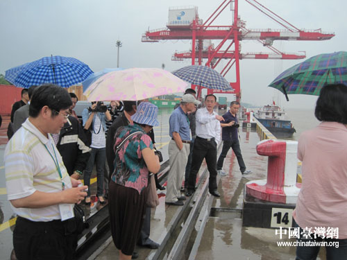 參訪團(tuán)在九江出口加工區(qū)港口參觀。圖片來源:江西省臺辦