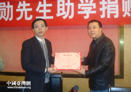 蔡孟勛先生在為推動贛臺之間交流合作的同時,他還以實際行動投身到慈善和捐贈事業(yè)中,奉獻著自己的片片愛心。今年他主動與新余市臺辦聯(lián)系,表達了要資助一批貧困學生的愿望。作為一名臺胞,能不遠千里來到新余市無償捐贈,充分體現(xiàn)了兩岸同胞一家親、血濃于水的情感。(中國臺灣網(wǎng)新余市臺辦通訊員謝忠平)