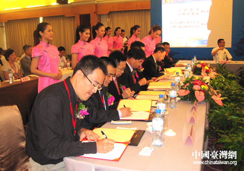 會上,江鈴集團等南昌市企業(yè)與臺灣相關(guān)企業(yè)簽訂了合作協(xié)議。(圖片來源:江西省臺辦)