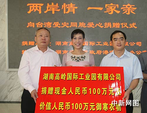 這是今年8月“莫拉克”臺風重創(chuàng)臺灣后,張青代表湖南高嶺國際工業(yè)園有限公司第二次援助臺灣災區(qū)。此前,張青已通過在臺灣的朋友,靠人力將一千斤大米背進山區(qū)分發(fā)給原住民。