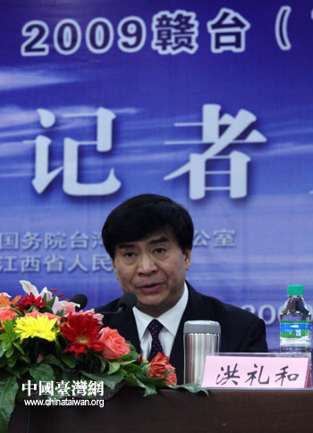 9月20日,2009贛臺經(jīng)貿(mào)合作研討會在南昌召開記者見面會,江西省副省長洪禮和介紹本屆贛臺會的情況。(中國臺灣網(wǎng) 鐘寶華 攝)