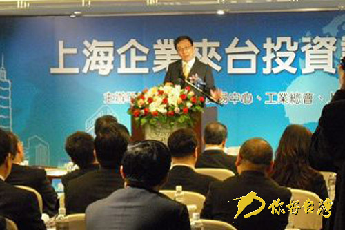 韓正市長在臺北方面主辦上海企業(yè)來臺投資說明會上致辭(你好臺灣網(wǎng) 圖)