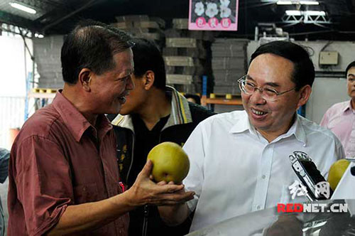 湖南和苗栗的情誼,今后將通過農(nóng)業(yè)經(jīng)濟等領(lǐng)域的合作,讓兩地百姓互惠而得以繼續(xù)。正在臺灣參訪的中共湖南省委副書記梅克保今天走訪苗栗農(nóng)會,他表示歡迎農(nóng)會帶技術(shù)來湖南辦農(nóng)場,或通過直銷把苗栗水果帶到湖南。隨行的湖南省連鎖商業(yè)協(xié)會會長胡子敬亦當(dāng)場表態(tài),將全力以赴,組織湖南超市設(shè)立臺灣卓蘭鎮(zhèn)水果專柜。