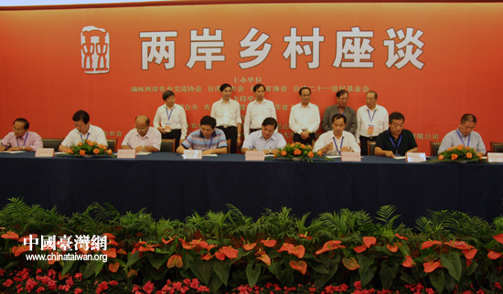 在第二屆兩岸鄉(xiāng)村座談會上,兩岸30個(gè)鄉(xiāng)村簽署合作協(xié)議,結(jié)成“對子”。(中國臺灣網(wǎng)發(fā))