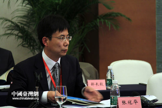 第七屆兩岸經(jīng)貿(mào)文化論壇7日在成都舉行,圖為中國社科院臺研所副所長張冠華在“大陸‘十二五’規(guī)劃與臺灣‘黃金十年’” 專題研討會現(xiàn)場(中國臺灣網(wǎng) 李徽 攝)