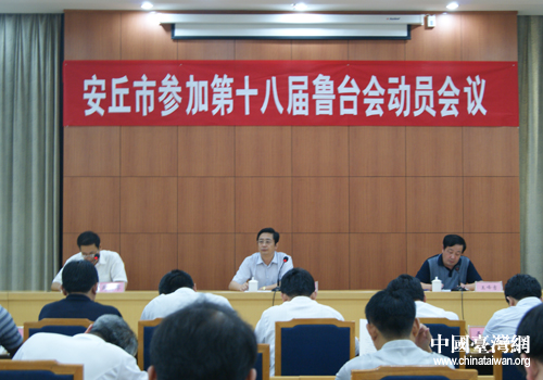 安丘市參加第十八界魯臺(tái)會(huì)動(dòng)員會(huì)議。(圖片來(lái)源:安丘臺(tái)辦)