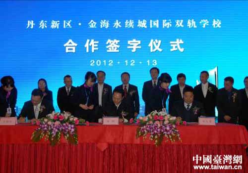 中國臺(tái)灣網(wǎng)6月28日丹東消息 2012年12月13日正式簽約、2013春天完成重新綠化、5月下旬硬件改造裝修工程動(dòng)工、6月3日開始面向國內(nèi)外招收小學(xué)、初中、高中一年級(jí)學(xué)生。半年時(shí)間,丹臺(tái)兩地企業(yè)合作創(chuàng)辦的丹東新區(qū)金海永續(xù)城國際雙軌學(xué)校,連續(xù)創(chuàng)造了多個(gè)“加速度”,讓人充分感受到金海永續(xù)城國際雙軌學(xué)校的熱情與期待。