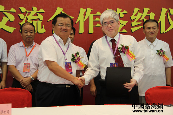 海南港航控股有限公司與臺灣港務(wù)股份有限公司簽約。(中國臺灣網(wǎng) 李丹 攝)