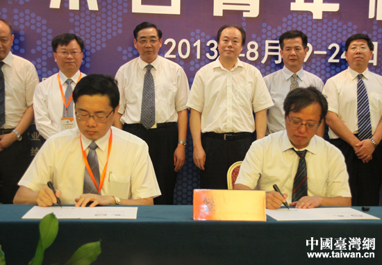 北京瑞正園農(nóng)業(yè)科技發(fā)展有限公司與臺灣臺一生態(tài)休閑農(nóng)場簽署《合作協(xié)議》。(中國臺灣網(wǎng) 孟雅詩 攝)