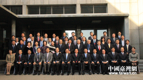 參加“兩岸產(chǎn)經(jīng)合作與創(chuàng)新發(fā)展論壇”的兩岸專家學者合影留念。(中國臺灣網(wǎng) 扶海濤 攝)