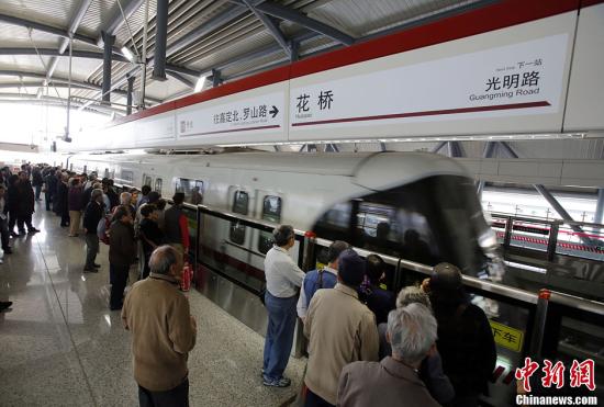 10月16日,中國(guó)國(guó)內(nèi)第一條跨省地鐵——上海軌交11號(hào)線花橋段開(kāi)通試運(yùn)營(yíng)。從江蘇昆山搭乘地鐵到上海市區(qū)將成為現(xiàn)實(shí)。從上海安亭至江蘇花橋只需8分鐘,最低票價(jià)3元;從花橋站出發(fā),1個(gè)多小時(shí)即可進(jìn)入上海市中心。中新社發(fā) 湯彥俊 攝