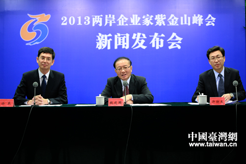 29日,兩岸企業(yè)家峰會組委會在北京舉行新聞發(fā)布會,以“兩岸產(chǎn)業(yè)合作新局:挑戰(zhàn)與對策”為主題的2013兩岸企業(yè)家紫金山峰會將于11月4日至5日在南京舉行。(中國臺灣網(wǎng)王偉 攝)