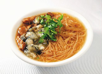 典故鄭成功攻打臺(tái)灣,在缺糧的情況下,士兵就地取材,以蚵仔、番薯粉混合煎成餅做糧食,后流傳為著名小吃。|