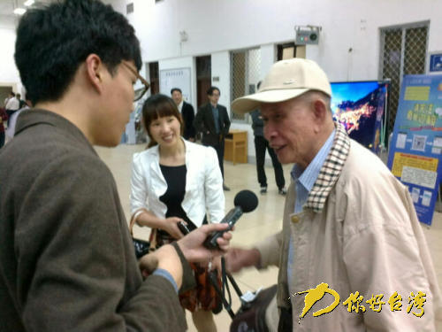 回鄉(xiāng)祭祖的臺灣鄉(xiāng)親正在接受記者采訪 (梁恒 攝)