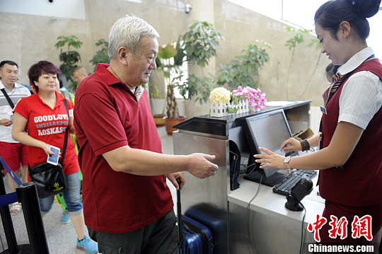 7月2日,乘客在長春龍嘉國際機(jī)場辦理登機(jī)手續(xù),準(zhǔn)備乘臺(tái)灣華信航空的航班前往臺(tái)北。當(dāng)天,由臺(tái)灣華航集團(tuán)華信航空公司執(zhí)飛的臺(tái)北-長春-臺(tái)北新航線正式開航,華航也成為首家運(yùn)營吉林省航線的臺(tái)灣航空運(yùn)輸企業(yè)。中新社發(fā) 張瑤 攝