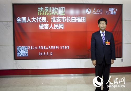 全國(guó)人大代表、淮安市市長(zhǎng)曲福田做客人民網(wǎng)。 劉佳攝