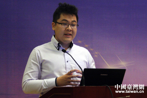 臺灣青商總會會長、健統(tǒng)實業(yè)股份有限公司總經(jīng)理郭倫豪發(fā)言。(中國臺灣網(wǎng) 張潔 攝)