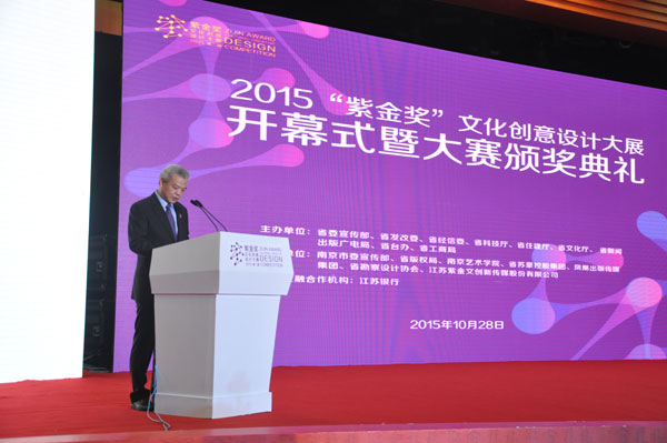 中國臺灣網(wǎng)10月29日南京訊 10月28日上午,“紫金獎”文化創(chuàng)意設計大展開幕式暨大賽頒獎典禮在南京新莊國展中心舉行。省委常委、宣傳部部長王燕文出席并啟動開幕按鈕,大賽主承辦單位領導,臺灣文創(chuàng)產(chǎn)業(yè)聯(lián)盟榮譽理事長李永萍等境內(nèi)外大賽評委會專家以及首屆大賽組委會大獎獲得者為大賽金獎獲得者頒獎。