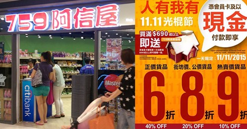 香港零售連鎖店“阿信屋”在今年雙11推出多檔折扣。圖自《明報(bào)》網(wǎng)站