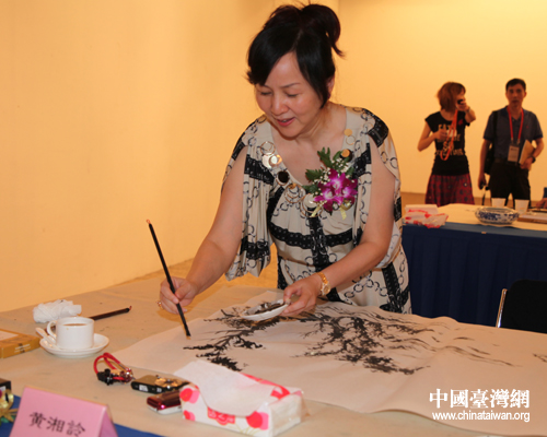 黃湘詅老師在筆會(huì)活動(dòng)現(xiàn)場作畫。她說畫畫是一件很開心的事。(中國臺(tái)灣網(wǎng) 李典典 攝)