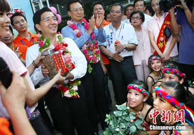 7月4日,“快樂青春、共享未來”桂臺青少年交流活動在臺灣彰化縣舉辦,臺灣主辦方向廣西自治區(qū)黨委書記郭聲琨贈送桂花子。中新社發(fā) 宋吉河 攝
