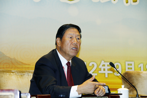 19日下午,全國社;鹄硎聲硎麻L戴相龍出席2012海峽兩岸企業(yè)家紫金山峰會之“兩岸金融合作專題論壇”并作主題演講。(中國臺灣網(wǎng) 于斯文 攝)