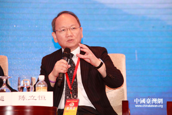 亞太文創(chuàng)協(xié)會(huì)理事長(zhǎng)、法蘭瓷公司董事長(zhǎng)陳立恒在兩岸企業(yè)創(chuàng)新與人才合作專題論壇上發(fā)言。(中國(guó)臺(tái)灣網(wǎng) 王偉攝)